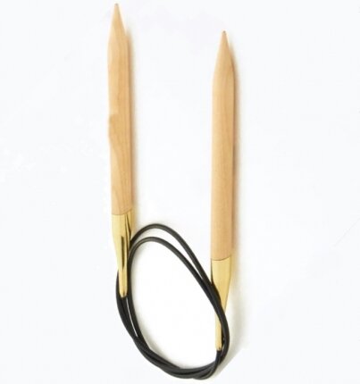 Спицы изготовлены из полированной древесины березы, которая обладает легкостью и прочностью. Леска упругая и гибкая, без эффекта скручивания, длина 80 см. Прочный и надежный гладкий переход от стержня к леске обеспечивает легкое скольжение петель и отсутствие зацепок.