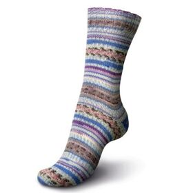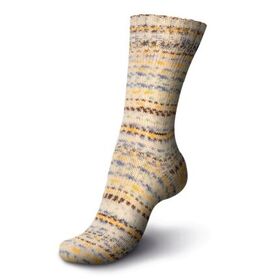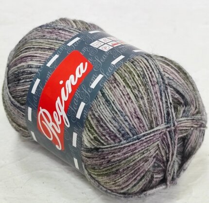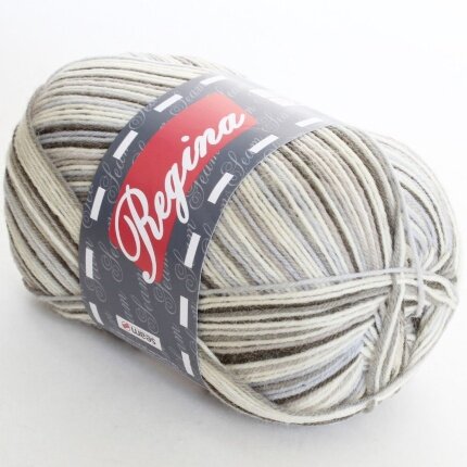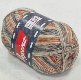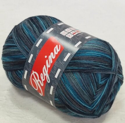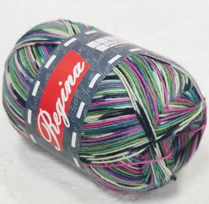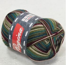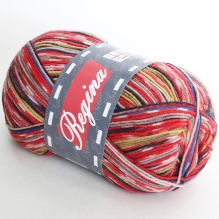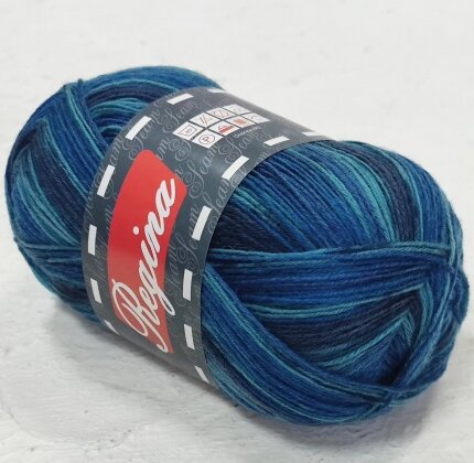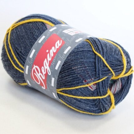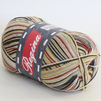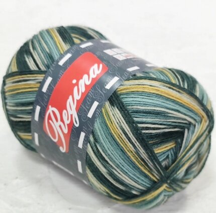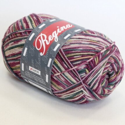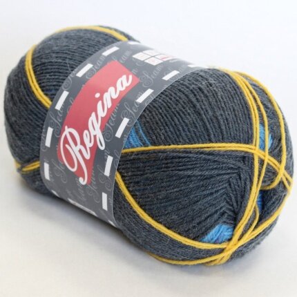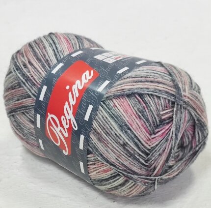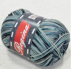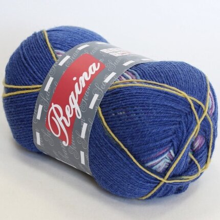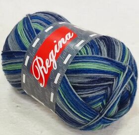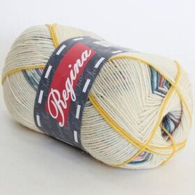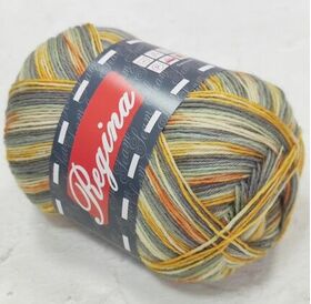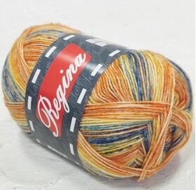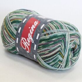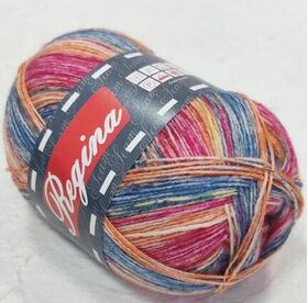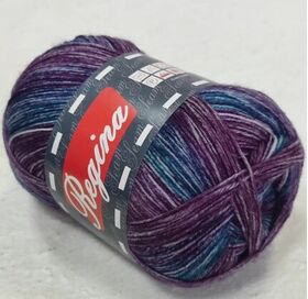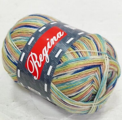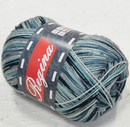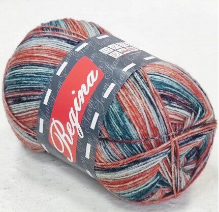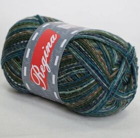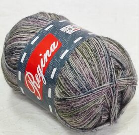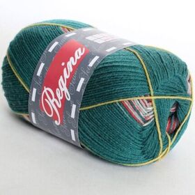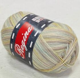Пряжа Регина принт предназначена для вязания носков. В составе нити 75% овечьей шерсти, добавка полиамида 25% придает изделиям износостойкость. Для вязания пары взрослых носков достаточно 100 г пряжи.