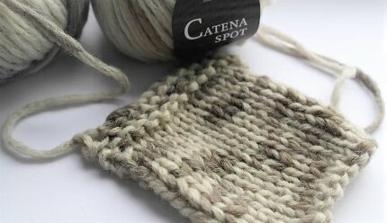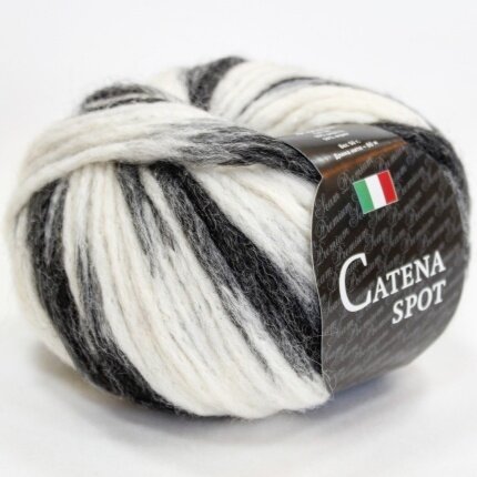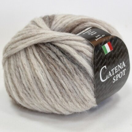 Итальянская пряжа Катэна Спот - мягкая и объемная нить-шнурок (catena -итал.- цепь) натуральных оттенков, раскрашена короткими цветными секциями, которые в вязаном полотне создают пятнистый эффект (spot - пятнышко, капля). Это толстая нить (60м/50г) для изделий крупной вязки.